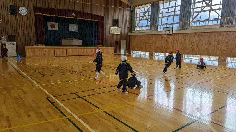 1年生がリレーの練習をしていました。前回見たときよりも大変上達しており、今回は2グループの差は殆どありませんでした。