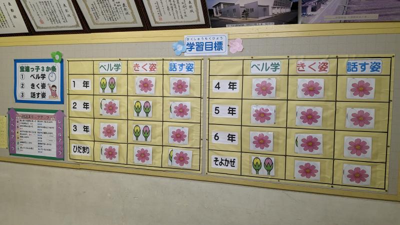 2学期もあと1週間となりました。学習目標、生活目標の達成に向けて、最後まで頑張ります。児童玄関横の掲示板には、宝達っ子の花がたくさん咲いています。来週の通知表わたしの際にご覧ください。