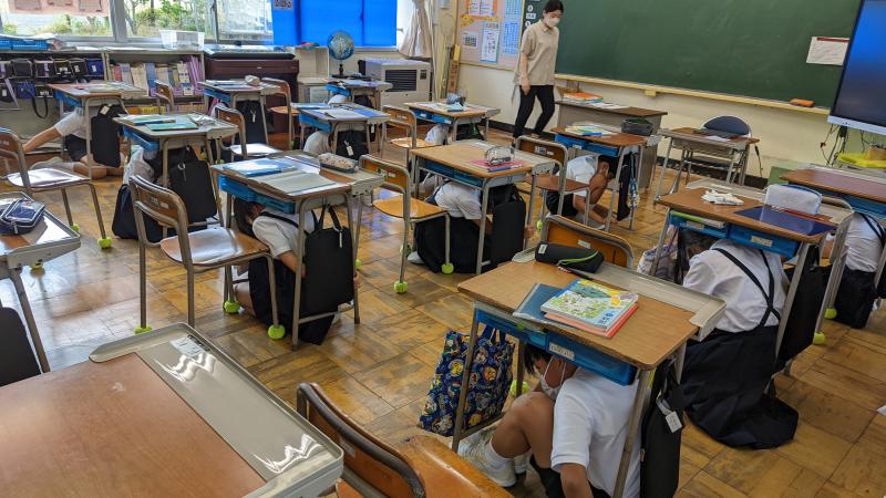 避難訓練がありました。今回は、地震訓練及び火災訓練です。子どもたちは、放送の指示通りに行動できました。残念ながら、悪天候のため、消火訓練と起震車体験は中止となりました。