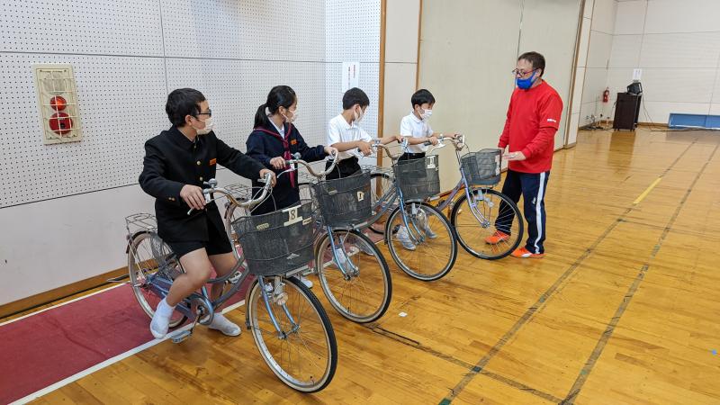 3年ぶりに自転車大会に参加することになりました。本日は開講式と最初の練習が、宝達志水町産業センター「ネクサス」で行われました。6年生3名と、4年生1名が参加しています。