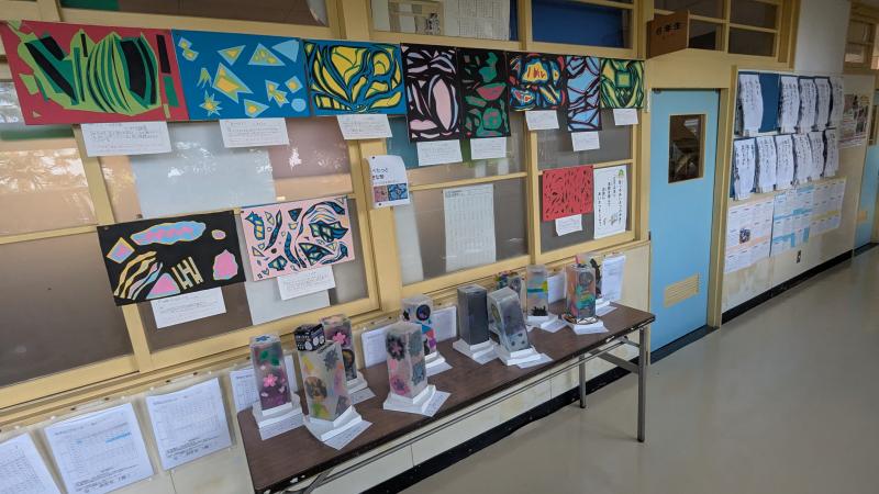 教室前廊下にいろいろな教科の作品が掲示されています。12月の通知表渡しの際に、学習の成果をぜひご覧ください。