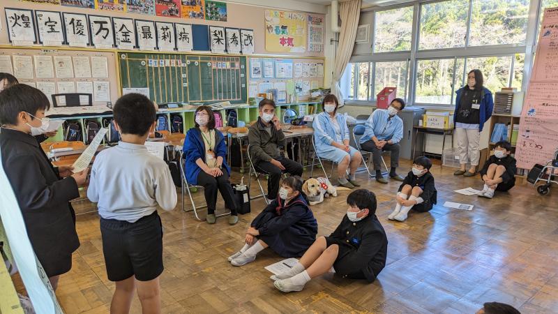 4年生が、総合的な学習の時間で学習した福祉の勉強の発表会がありました。お世話になった講師の先生方にも来ていただきました。