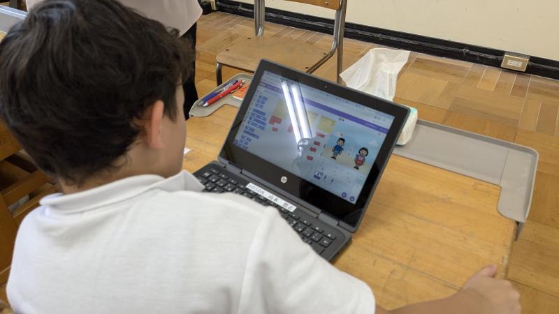 そよかぜ学級の子どもたちがプログラミングの学習に取り組んでいました。講師の先生はICTサポーターの髙木さんです。教材のアプリは「Scratch(スクラッチ)」です。コマンドブロックを組み上げて、キャラクターを思いどおりに動かすことができるかチャレンジしています。HPの学習支援のコーナーにもリンクが張ってありますので、興味にある方はアクセスしてみてください。