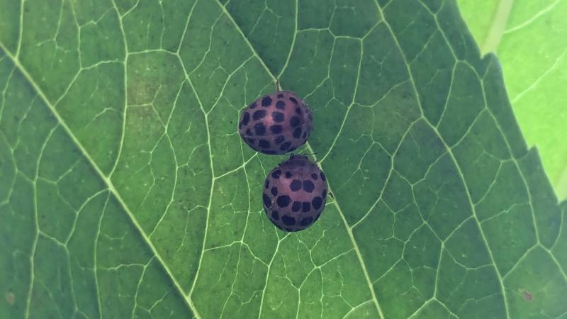 「ニジュウヤホシテントウ」です。数えていませんが、星(黒い斑点)が28個あるのでしょう。
