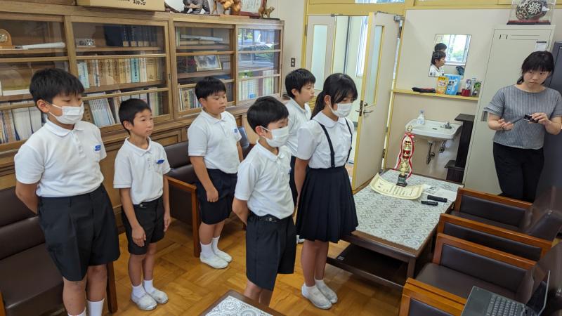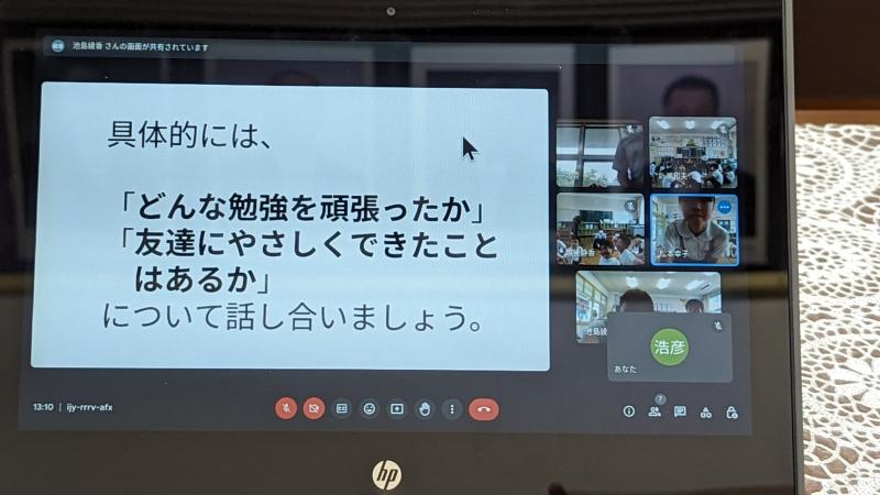 暑くなってきましたので、7月の全校児童集会はリモートで行いました。縦割り班で、6月の生活目標について話し合いました。また、先日の交通安全子供自転車大会石川県大会の表彰伝達を行いました。