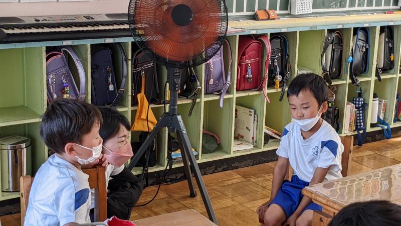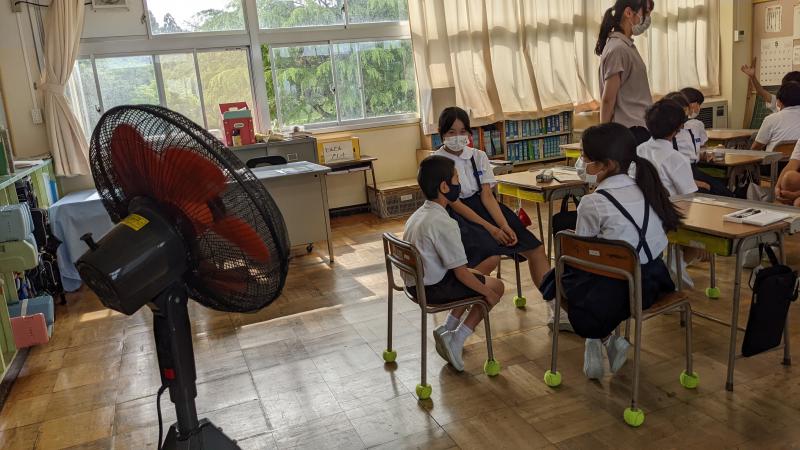 一昨日は気温が30℃を超えるところも出るほど暑かったですが、今日はそこまで気温が上がらず涼しく感じるほどでした。普通教室のエアコンの試運転は終わっていますが、本格稼働までは大型扇風機が活躍します。昨日から普通教室に配置しました。熱中症予防のために活用しています。