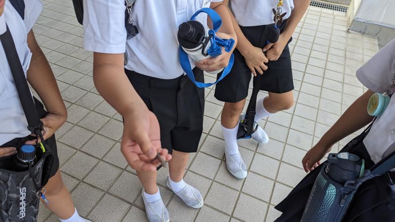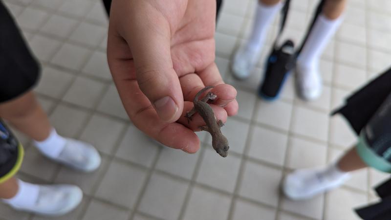 登校してきた4年生が、途中で見つけたヤモリを見せてくれました。その後そっと草むらに返してあげていました。自然が大好きな、そして心優しい宝達っ子です。