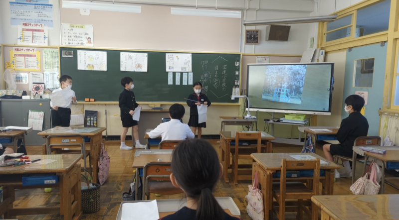 3年生が国語の学習で、「宝達小学校のじまん」についてプレゼン発表してくれました。どのグループも写真や新聞などを取り入れて、わかりやすく発表することができました。