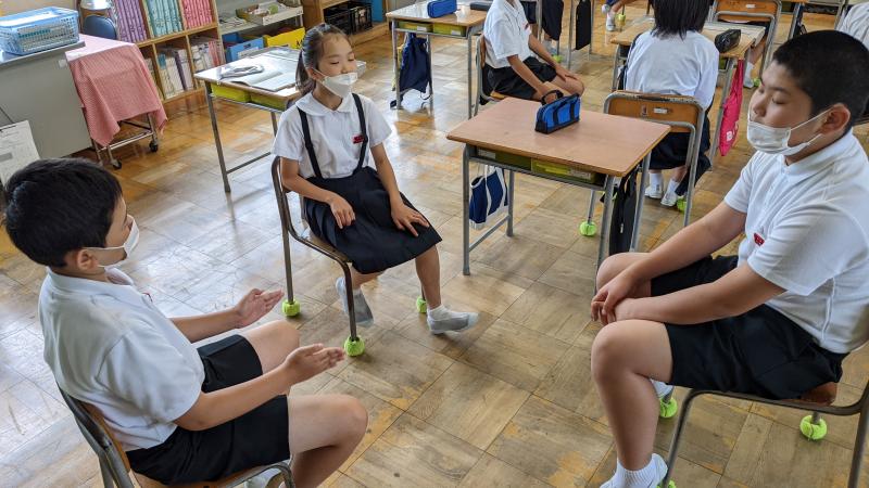 相手意識のある話し方・聞き方を身に付けるための対話トレーニングに取り組んでいます。「分かりました」と声をそろえた反応ではなく、頷いたり、相槌を打ったりといった自然な反応を目指します。