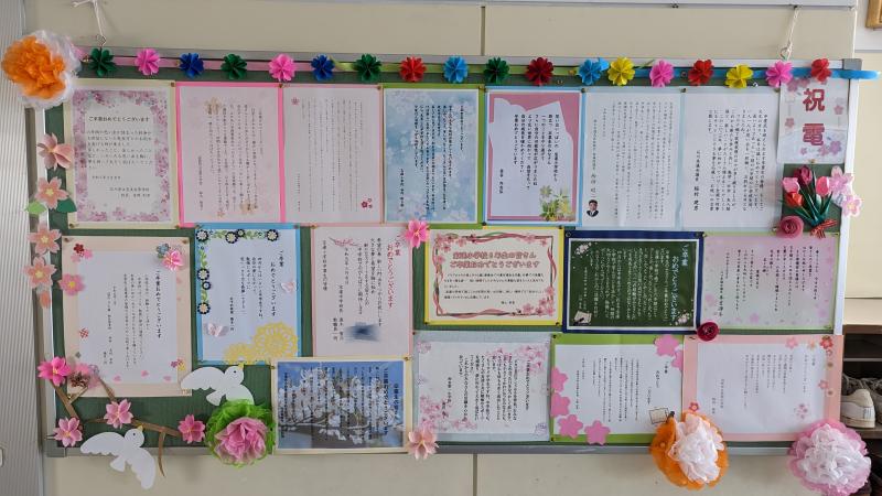 17名の方々からの祝電などのメッセージをいただきました。児童玄関に掲示してありますので、卒業式当日ご覧ください。