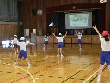 体育では,映像を見ながらリズムダンスに挑戦しました。「ドラえもん」「サザエさん」の曲に合わせ,みんなノリノリで楽しんでいました。