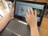 そこでは、「スクラッチ」というプログラミングソフトを使って、自分だけのお話を作りました。