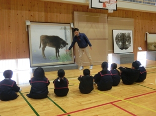 11月15日(金)県立美術館出前講座を行いました。絵画や彫刻などを間近に見ることができました。また,学芸員の方から鑑賞の仕方を教えていただきました。作品を見ながらいろいろな想像を働かせることで「芸術の秋」を楽しみました。