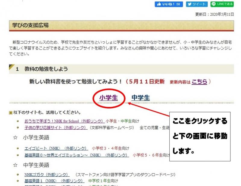 上のリンク先をクリックすると「学びの支援広場」にジャンプします。
