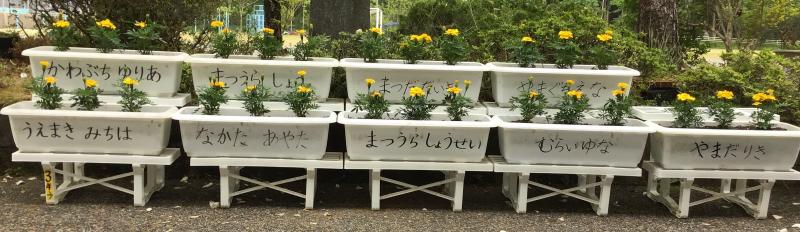 そよかぜ学級とひだまり学級はいっしょにプランターの花を観察しました。