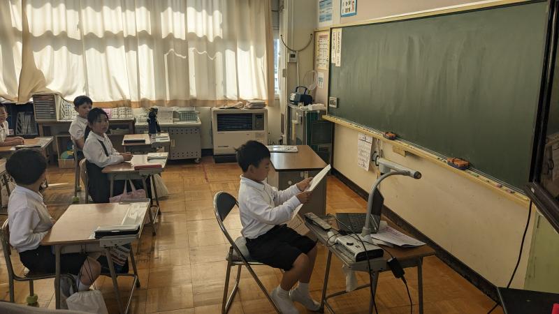 今日は1年生がアサガオの種を植えていました。ゲストティーチャーは用務員の越野さんです。いつもありがとうございます。