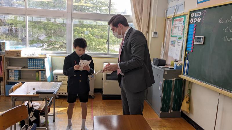 ALTのJoeyさんとの外国語の授業も今年度最後となりました。たのしくゲームをしながら勉強することができました。Joeyさん、来年度もよろしくお願いいたします。