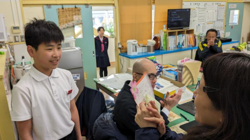 まだまだ続きます。2・3年の担任とひだまり学級の担任の先生方にも、お手紙と記念品のプレゼントです。