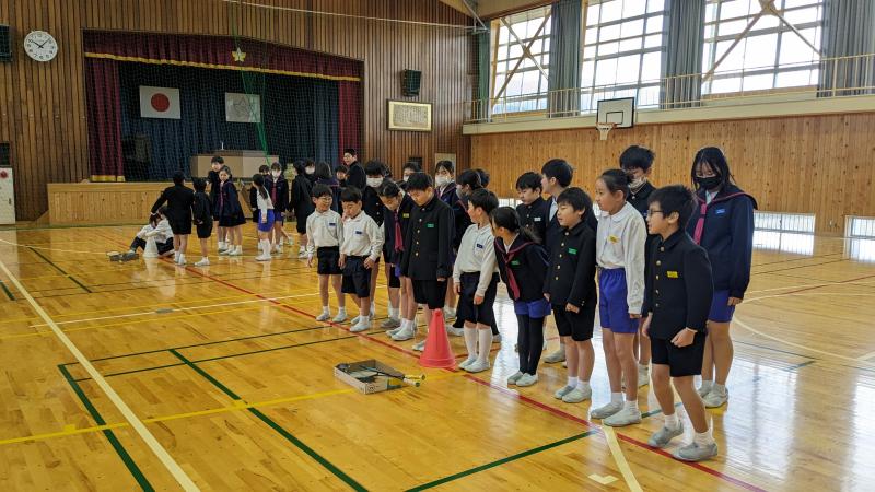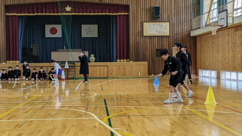寒の戻りで、朝から雪の舞う寒い日になりましたが、子どもたちは元気に体を動かしています。2・3年生がソフトバレーボールの学習をしていました。試合前に、それぞれのチームで、作戦について話し合っていました。また、どちらのチームも、声を掛け合って試合をしているところが良かったです。