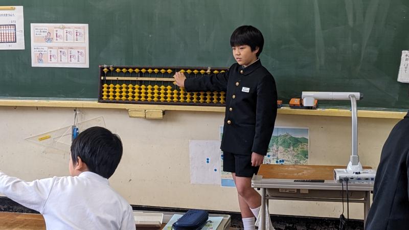 今日も4年生が3年生にそろばんの使い方を教えてくれています。頼もしい4年生です。ありがとうございます。
