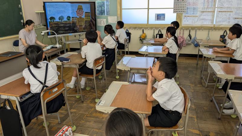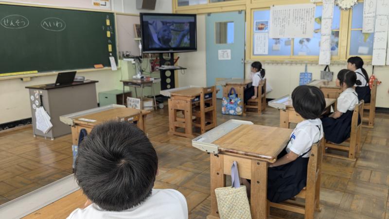 今日の全校登校日は、全校集会(平和集会)や学級指導がありました。大変暑い日になりましたので、リモート集会としました。校長先生のお話(「佐々木禎子」のこと)、担任の先生の読み聞かせ(平和に関する図書)、振り返りの順に行いました。