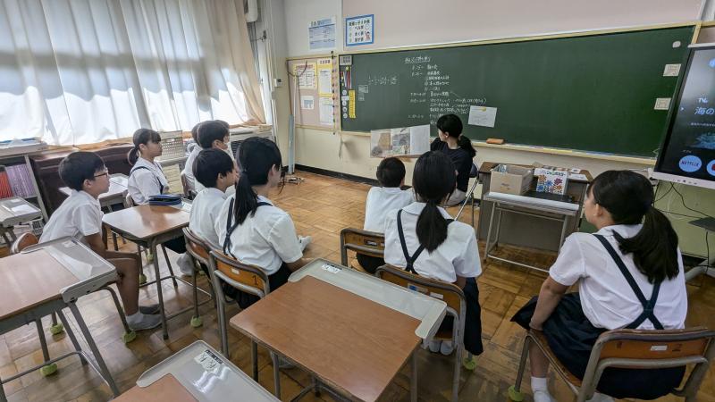 3年生が電子黒板に意見を書き込みながら話し合っています。3年生でも電子黒板を使いこなしている姿に感心します。