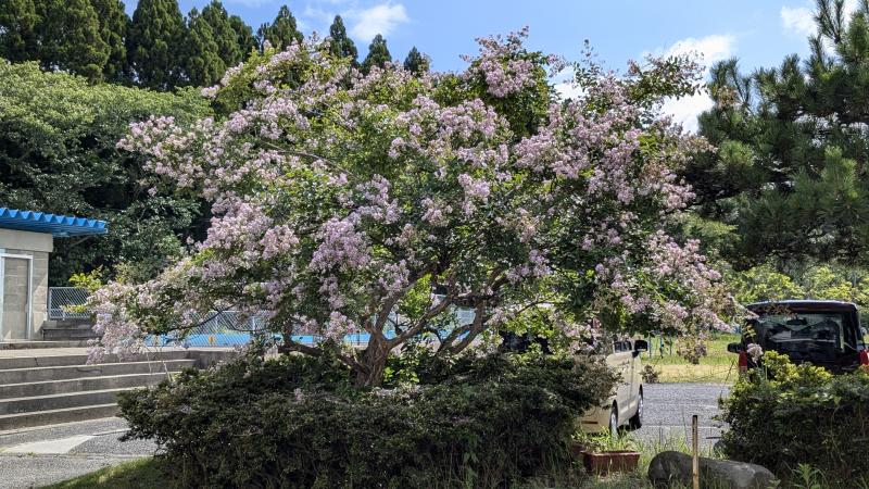 答えは、「サルスベリ(百日紅)」です。名前の通り、ツルツルした幹が特徴です。あと、長い期間花が楽しめることも特徴です。