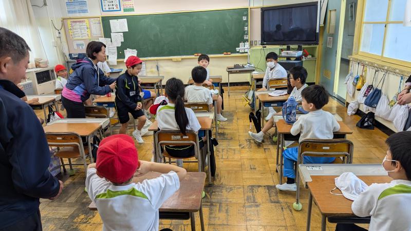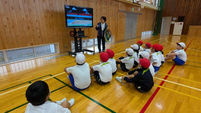 居住地交流の児童が訪問し、いっしょに体育の学習に取り組みました。授業の前には、アイスブレイクで「じゃんけん列車」で楽しみました。その後体育館で、はばとび運動の学習で、いろいろな練習方法を学びました。居住校交流の児童にも優しく接する姿が見られ、楽しそうに活動する姿が素敵でした。