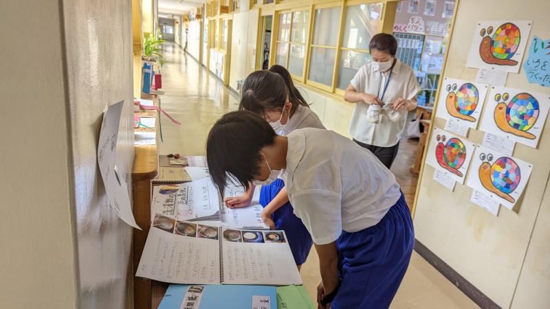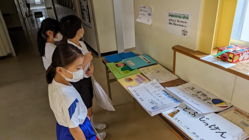 羽咋郡市の科学作品の優秀作品の展示をしています。子どもたちには、来年度の夏休みの自由研究のヒントにするよう声をかけました。今日の昼休みに、熱心に作品を見る子どもたちがいました。