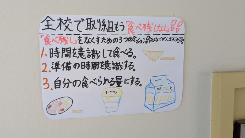 マスコミ等で食品の値上がりが話題になっています。食べ物のありがたさが感じられるこの頃です。本校では、食品ロスを無くすために食べ残しをできるだけしないという呼びかけを児童会・委員会で行っています。