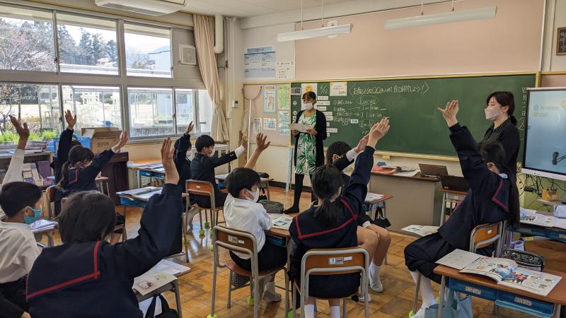 ALTのAmoy先生と楽しく英語の学習をしています。積極的に英語を使おうとする子どもたちの姿が見られます。