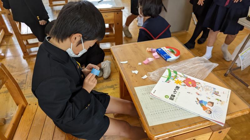 22日に2年生の3校合同の交流学習が予定されています。生活科のおもちゃランドです。各学校の子どもたちが考えた、どんなおもちゃ登場するかとても楽しみです。参加児童に渡す景品づくりにも取り組んでいます。