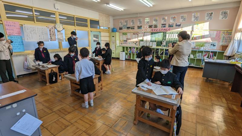 今回は、ノート展覧会に合わせて、子どもたちの「自学ノート」を他学年の児童に紹介する活動を設定しました。頑張ったところや工夫したところを説明します。