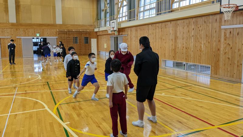 縦割り縄跳び練習に取り組んでいます。8の字跳びを縦割り班で練習しています。