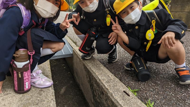さすが宝達っ子、昆虫を見つけるのが速い!色がきれい!棘がある!と色々なことを観察し発見します。さてこれは?1回出てきましたね。子どもたちは覚えていました。