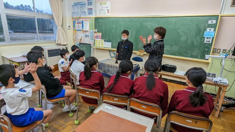 今日も梅田さんの読み聞かせがありました。今日は4年生です。毎回、読み聞かせのあとは、その月に誕生日を迎えた子にハッピーバースデーの曲をみんなで歌ってお祝いしています。