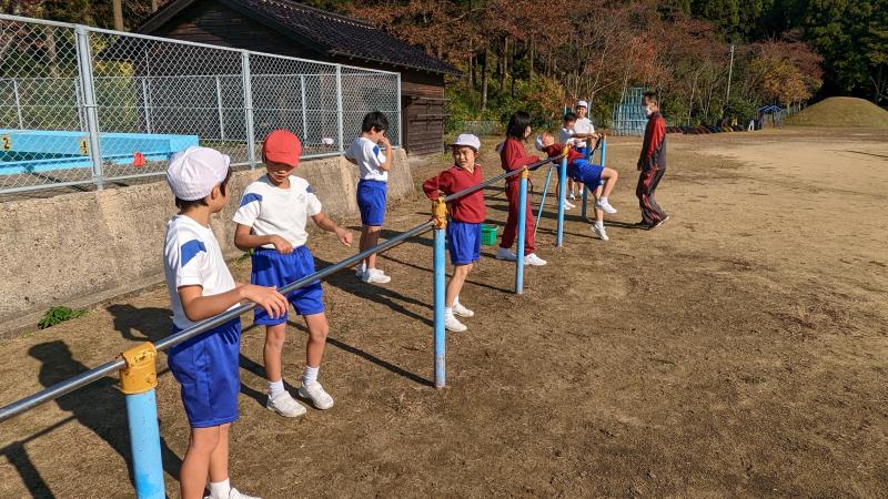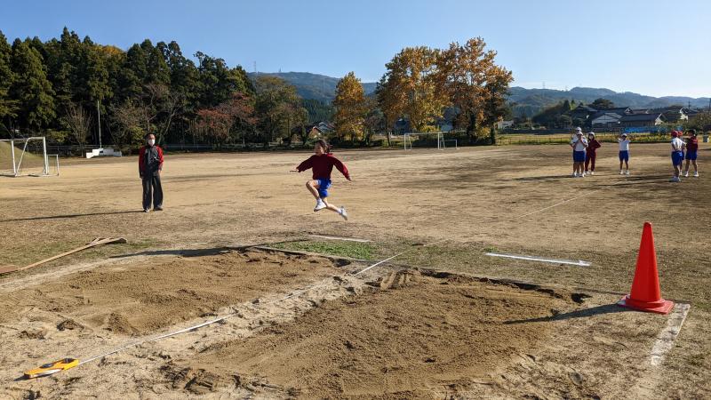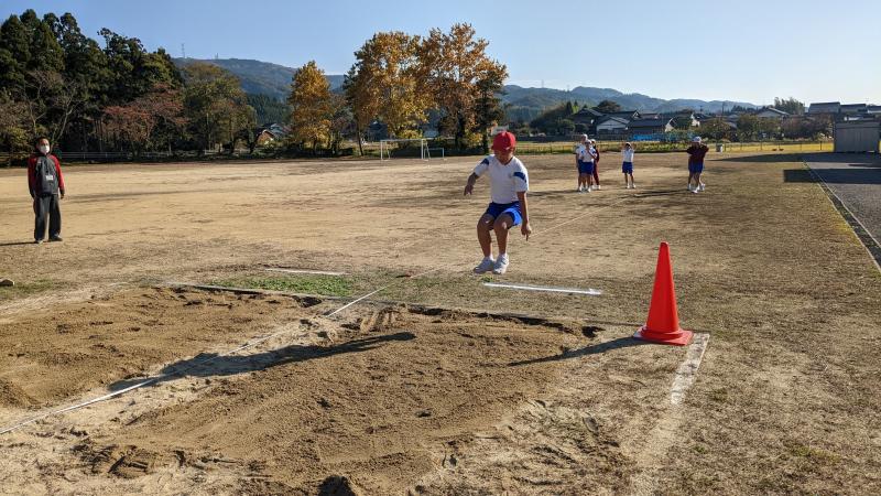 5年生が寒さに負けずに元気に外で体育の授業を受けていました。鉄棒と走り幅跳びです。それぞれの目当てをしっかり持って取り組んでいます。