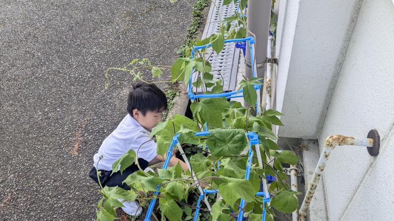 夏休みまであと1週間となりました。各学年では、1学期のまとめの学習や夏休みに向けて手のいろいろな準備に取り組んでいます。1年生がアサガオの鉢を移動していました。夏休みは家に持ち帰ってお世話をすることになると思います。ご協力をよろしくお願いいたします。