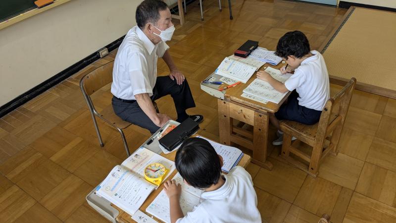 そよかぜ学級の2人が、算数で時間の学習に取り組んでいました。時間と時刻の区別はなかなか難しいですが、生活にとても大切な知識になりますので、しっかりと身に付けてほしいと思います。