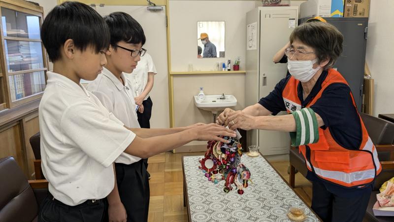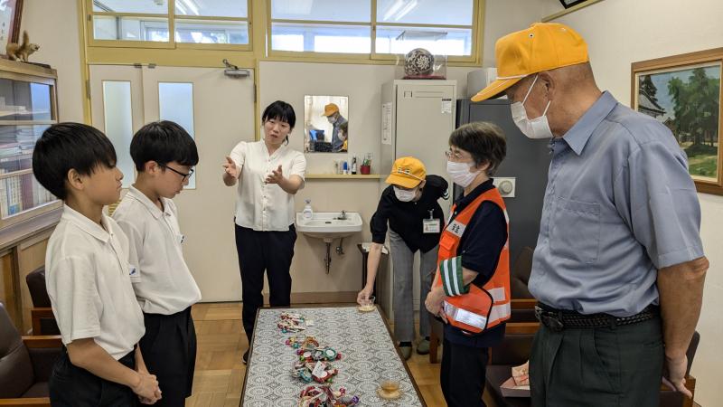 交通安全協会母の会から「手作りマスコット」をいただきました。鈴がついており、クマ対策にもなります。同伴された、交通安全協会の橘さんからも交通安全についてご指導いただき、児童代表の6年男子2名も交通安全に気をつけることを約束しました。