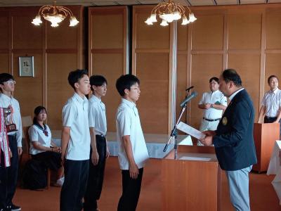 開会式では、宝達高校ゴルフ部主将の藤池君が選手宣誓を任されました。