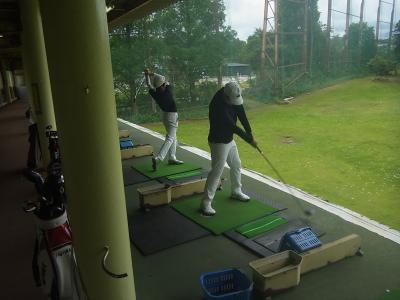 ラウンド練習は中止となりました。その分、びっしりと練習場で、