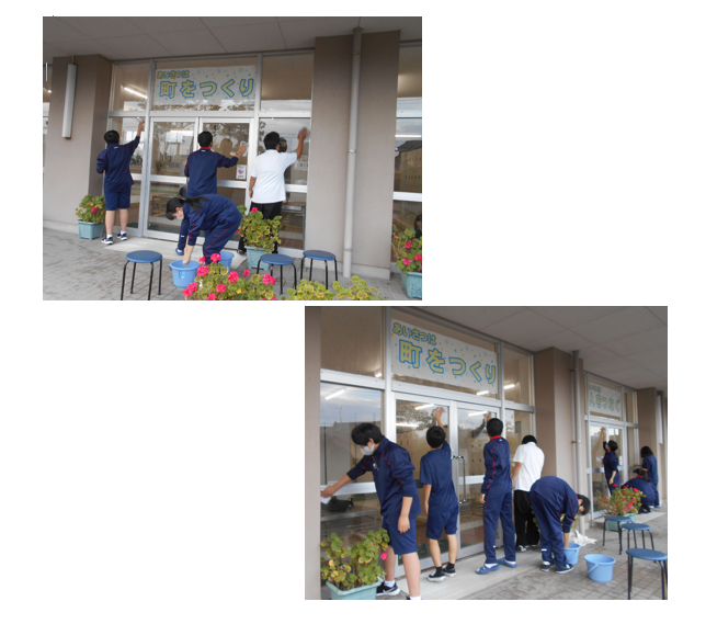 10/21(水)部活動ボランティア「玄関の窓ふき」