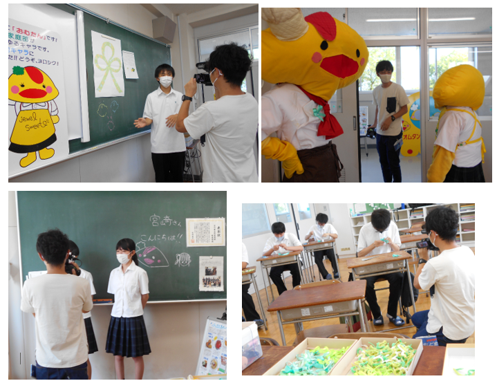 8月20日(木)家庭部が、テレビ金沢「24時間テレビ 宮崎由加さん✖キミの部活に表彰状!部活で動く高校生たち」の取材を受けました。昨年12月に、かほく市出身のタレント・宮崎由加さんがリポーターとして来校して下さり、部員達と一緒にロール慶次を作ったり、研究発表を見て下さいました。そして「表彰状」を頂きました。今回は、昨年、番組内で表彰を受けた県内11校が、コロナ禍の現在の部活動の様子をビデオメッセージで届けるという内容です。