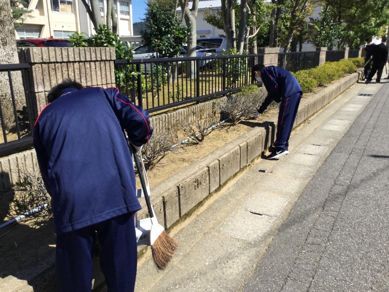 部活動ボランティアとして卓球部員7名で校舎外周の清掃を行いました。