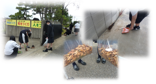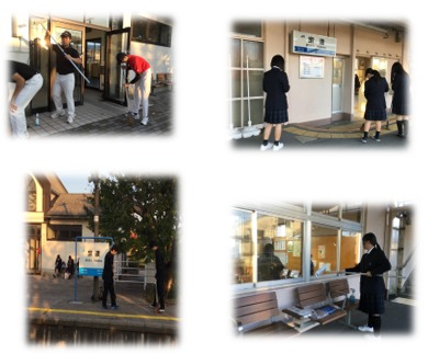 10月26日()放課後、部活動のボランティア活動として、美術同好会、ボランティア部、ゴルフ部、卓球同好会の23名が宝達駅・敷浪駅の清掃に取り組みました。