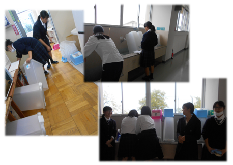 放課後、9名の部員で校内各所のゴミ箱の洗浄をしました。
