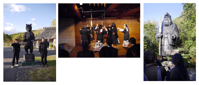 初めに白老のポロトコタンへ行きました。天候は晴れですが、気温が低く肌寒いです。ポロトコタンではアイヌ民族について学習しました。この後はサイロ展望台へ向かいます。