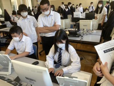 ワープロ競技には、2年生2名と1年生3名 計5名が出場。10分間に何文字入力できるかを争う競技に挑戦しました。結果は、43名中21位が最高順位でした。
