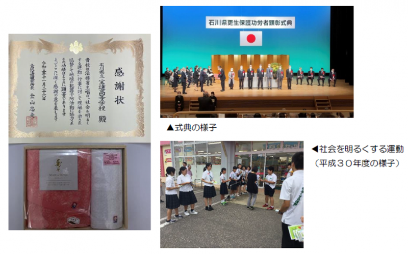 本校生徒が毎年参加している『社会を明るくする運動』への協力に対して、金沢保護観察所長感謝状が授与されました。